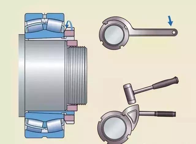 对于中小型的轴承,可以利用锁紧螺母、钩形扳手或冲击扳手来进行拆卸(图10)。