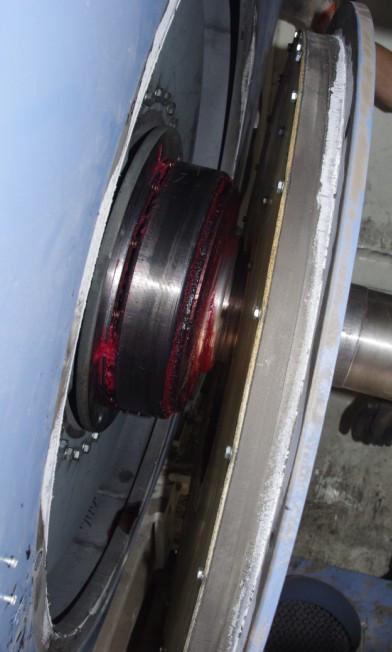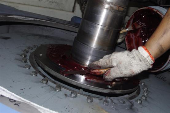 10.把轴承内挡圈恢复原来位置,并进行油脂的涂抹(油脂为美孚100)。