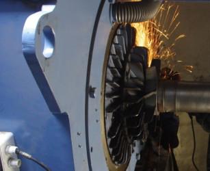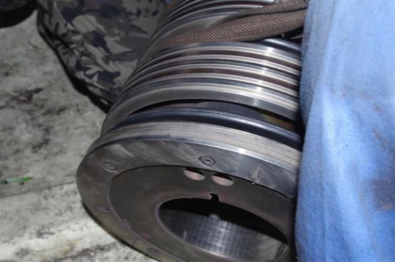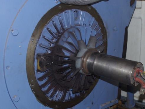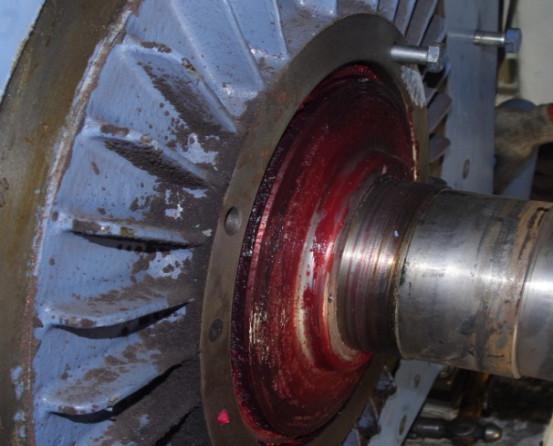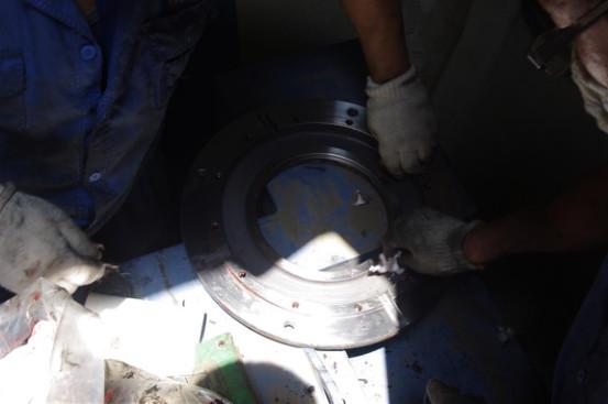 4.完成第三步工作后,如上图所示,在最外边的是发电机轴风扇,盾安人员对轴风扇采取用角磨机切割处理,并已经说明存在意义不大。