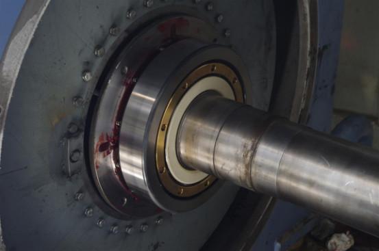 9.此时发电机轴承拆卸工作全部完成,将拆下后的轴承挡圈上的油污全部擦拭干净。