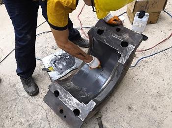 (8)再次少量调和索雷SD7101H碳纳米聚合物材料,均匀涂抹至修复后的表面,迅速将轴承安装到位,完成修复。