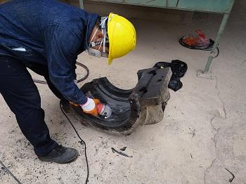 (2)表面打磨:使用磨光机将表面打磨粗糙、干净,提高索雷碳纳米聚合物SD7101H的粘结力。整个打磨过程控制在30分钟左右;