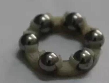 这下我们就得到一个保持架、一个钢珠彻底裸露的轴承。接下来的就是把钢珠拨到一起把内圈取下。
