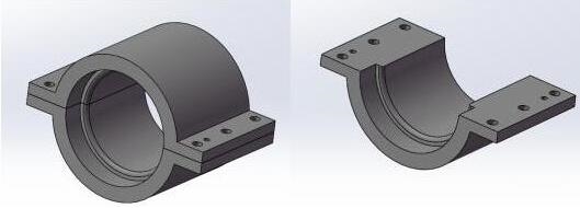 4.将工装内外面擦拭干净,并将两个半圆工装紧固好,使用测量工具检测工装的加工精度,包括定位尺寸,修复尺寸及工装内径的圆度等;