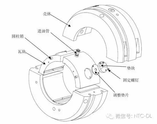 椭圆瓦轴承系自位式轴承,具有结构上层次少的优点,在轴承体内表面直接浇注巴氏合金,将轴承内瓦面加工成椭圆的形式。