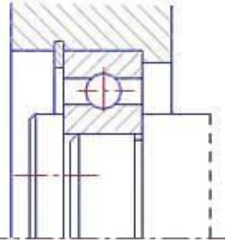 e)用嵌入外壳沟槽内的孔用弹性挡圈紧固,主要用于轴向力不大且需减小轴承装置尺寸时;