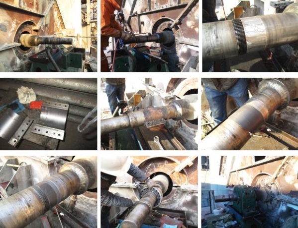 补焊加加工: 热应力集中,容易导致轴类弯曲变形或者断裂,并且对于大型轴类或者轴承室修复,综合成本高,修复周期长,劳动强度大,对加工设备要求苛刻严格;同时无法实施在线修复;