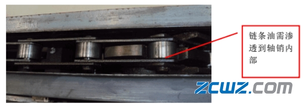 (3)良好的渗透性,能渗入链环的各个摩擦环节,形成油膜;由于销和销孔的配合间隙小,普通的润滑剂很难到达摩擦面,因此,这是链条润滑技术上的关键。