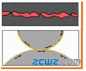 上图显示为轴承边界润滑,其特点首先取决于边界润滑膜的特性。