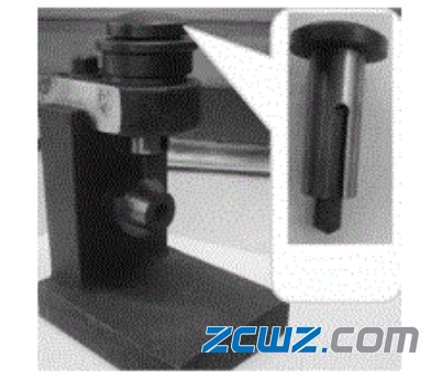劈爪加工是操作者凭借经验通过手动锤对凸模施加力,使锁爪顶部向两侧张开产生一定的变形锁住滚子,工装如图13所示。锁爪的变形应不影响轴承的装配,对轴承的运转不产生干涉,但在劈爪过程中若操作者施力过大,凸模完全进人锁爪与锁爪根部接触,在冲击力的作用下,导致锁爪根部发生变形,从而带动兜孔横梁区域也随之发生变形,出现凸凹不平现象,使横梁产生异常接触痕迹。