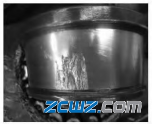 轴承碾皮是轴承检修中常见的故障之一,在轴承外观检查中经常发现这一故障。下面这套轴承就是轴承工作者在转动检查过程中,发现轴承转动异音,经分解轴承后发现滚子划痕变色、外圈内滚道圆周碾皮(图3、图4)。