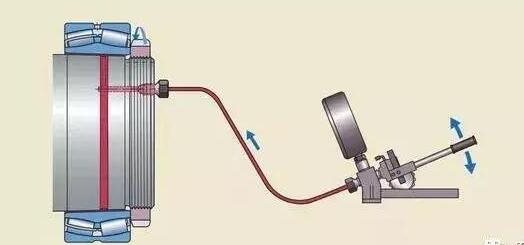 注油法的工作原理是:液压油在高压下通过油孔和油槽,注入轴承和轴径之间的配合面,形成一层油膜。油膜将配合面分开,使得配合面之间的摩擦大幅减少。