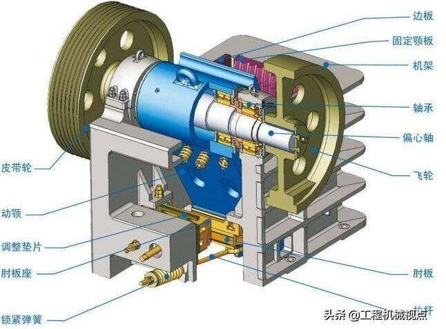 在颚破中,机架、动颚、偏心轴是重要的三大部件,每种部件的加工配合尺寸息息相关,在机加工过程中,要求尽最大可能保证图纸要求的公差范围,这样才能减少加工的积累误差,使装配质量得到更好地提高。