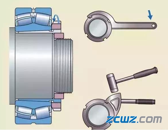 对于中小型的轴承,可以利用锁紧螺母、钩形扳手或冲击扳手来进行拆卸(图4)。