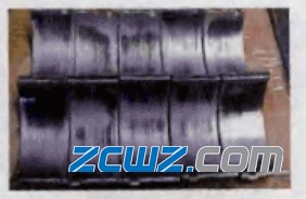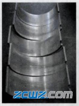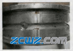 现象:在一对配合的主轴瓦的上部轴瓦或下部轴瓦有明显的磨损条纹(如图17所示)。这种磨损从—片轴瓦转移到另一片轴瓦,但总体来说主要表现在中心轴瓦上。