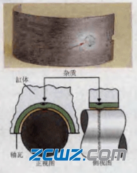 原因:润滑油中的灰尘、污垢、磨屑以及金属颗粒吸附在轴瓦表面上,使抗磨合金材料移位。这些合金材料或微粒到达曲轴上,引起局部摩擦,从而破坏了润滑油膜。在解体发动机的维修工作中,装机前或装机后,发动机各部件清洗不彻底,将会遗留杂质在发动机内部。金属元件磨损后也会使发动机各部件的工作环境恶化。