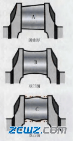 现象:轴瓦表面呈不均衡的磨损条纹(如图18所示)。根据最高压产生的区域,曲轴呈现出3种失圆形式(如图19所示)。