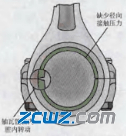 原因:由于连杆在交替负荷下发生弯曲,轴瓦的安装腔变成椭圆形,导致轴瓦也有形成这种形状的趋势(如图5所示),因此轴瓦内表面形成椭圆形。由于内腔变形,轴瓦的分隔间隙明显减小,这将导致抗摩擦合金与曲轴颈部之间的金属发生撞击。