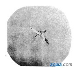 图片6-13 宏观断口上的白点形貌 白点实质是一种脆性锐边裂纹,具有极大的危害性,是马氏体和珠光体钢中十分危险的缺陷。