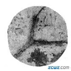 图片6-7 锻件中缩孔残余横向试片上的宏观形貌 防止该类缺陷的对策是: