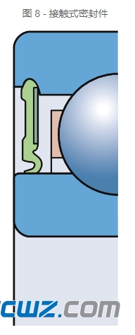 防尘盖和内圈之间有一条小缝隙。带防尘盖的轴承(图 7)适用于相对清洁的工况,或鉴于速度或工作温度考虑必须低摩擦的应用。