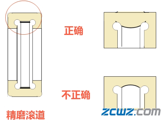 3)因砂轮宽度不够或震幅不够,滚道面产生台阶,导致轴承无游隙,无法使用;