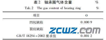 此轴承套圈的材质使用的是GCr15圆钢,GCr15圆钢在冶炼时经过RH真空脱气处理,追溯缺陷产品出厂气体检验记录,检验合格。对缺陷产品制样进行气体分析,如表2所示。由此可见该缺陷非皮下气泡缺陷。