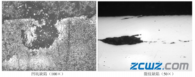 2)目前毛坯轴承圈外表面的加工余量为0.6mm,在磨削过程中表面缺陷全部被清除,未发现外表面缺陷;内表面的加工余量为0.3 mm,应增加磨削加工余量,将内表面的缺陷清除。