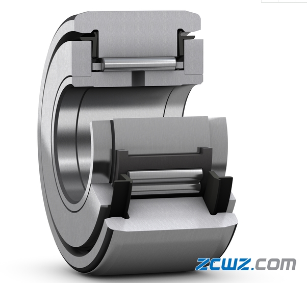 所谓的滚轮轴承指的是外圈采用外圈壁较厚的满装圆柱滚子轴承,滚轮的外径面有圆柱形和弧形,可根据使用场合设计来与滚道面配合。利用这种外圈,滚轮可以直接在滚道上滚动,并可以承受较重负荷和冲击负荷。