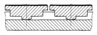 米楔尔止推轴承的止推瓦块间基环直接接触,是单层的(如下图所示)。当止推瓦块承受推力时,可以自动调整止推瓦块的位置,形成有利的油楔。在止推盘两侧分置主止推瓦块和副止推瓦块。在正常情况下,转子的轴向力通过止推盘经过油膜传给主止推瓦块,然后通过基环传给轴承座。但在起动或甩负荷时可能出现反向轴向推力。此推力将由副止推瓦块来承受。止推瓦块与转子止推盘接触的一面衬有巴金合金。其厚度应小于1-1.5mm。并向转子的旋转方向倾斜,这样通过转子止摊盘与止推瓦块表面的相对运动,它们之间就会形成一个承受轴向推力的油楔。