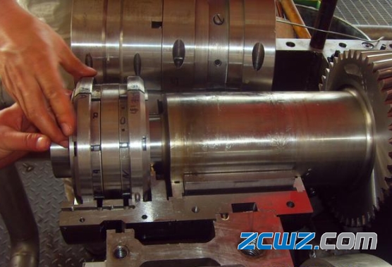 离心式压缩机常采用的止推轴承有米楔尔止推轴承和金斯伯雷止推轴承,它们的共同特点是有多个活动的止推瓦块,在瓦块后而有承力点,止推瓦块可以绕支点摆动,以形成最佳状态的润滑油膜。