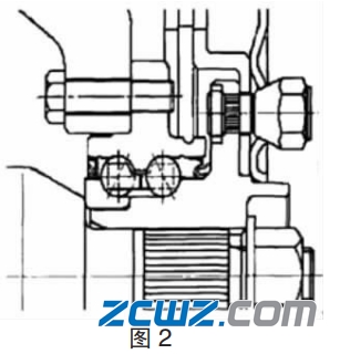 2.3 游隙设计参数不良:游隙设计不良导致轴承沟道点状剥落问题,检测轴承内部油脂含水量及点状剥落材质均不能发现异常。轮毂轴承使用过程中只有负游隙偏紧能造成沟道剥落问题,负游隙需要锁紧螺母锁紧来实现(如图 2 所示)。