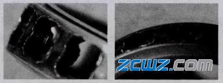 图3、4 外滚道挡边碾压变形和内滚道剥落形貌