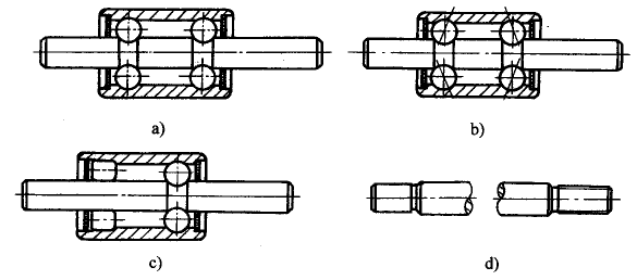 | WB WR | 两列球的水泵轴连轴承(如图a)、b)所示) 一列滚子、一列球的水泵轴连轴承(如图c)所示) | |||