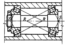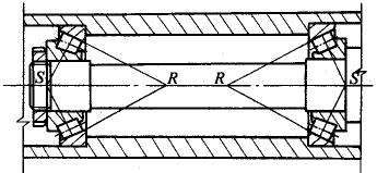 | 在纯径向载荷或轴向载荷较小的联合载荷作用下的轴,一般采用向心轴承组成两端固定支承,并在其中一个支承端使轴承外圈与外壳孔间采用较松的配合,同时在外圈与端盖间留出适当的空隙,以适应轴的受热伸长 | |