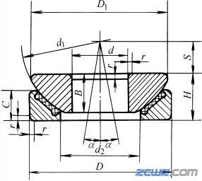 GX…F型自润滑推力关节轴承的结构型式和外形尺寸