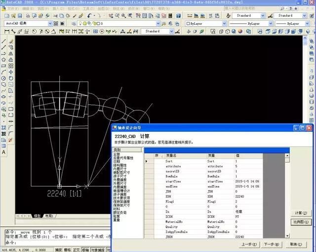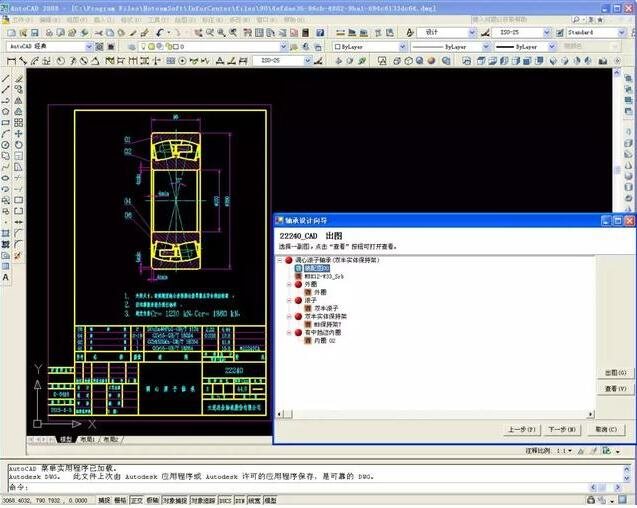 轴承向导式参数化设计系统,通过自定义轴承的设计参数、标准表、公式、模板等基础数据,在向导中自动调用参数、查表、计算,最后输出轴承设计总图、比例图、设计计算稿和各零件图。