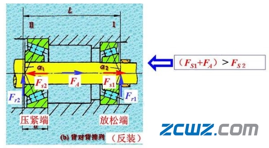 a、根据轴上的外加轴向力和两轴承上的附加轴向力判断轴的移动趋势,然后结合轴承的安装方式来分析哪一端轴承被压紧,哪一端轴承被放松;