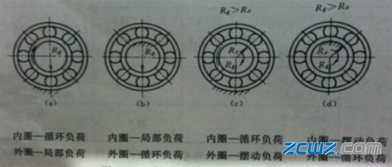 机器运转时,根据作用于轴承上的负荷相对于套圈的旋转情况,可将套圈所承受的负荷分为以下三种类型: