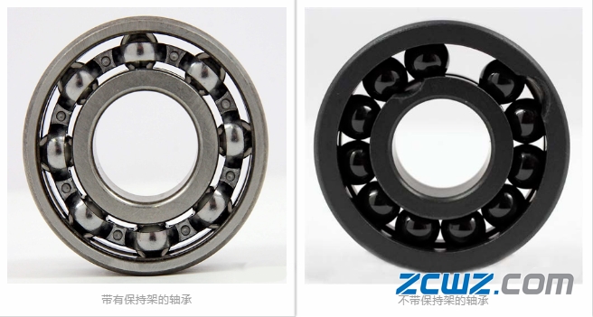 我们只要打开轴承,就会发现往往滚子并不是一个挨一个地挤在内环和外环之间,而是又类似于豌豆荚一样的东西包裹着滚子,我们可以通过下面两张图,分辨出来带保持架和不带保持架的滚子分别是什么样的。