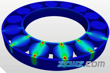 我们看看下面这张图,是轴承在真实工作状态下的受力,可以发现,因为轴承承载的物体往往会受到竖直方向上的力,所以每个滚子受到的力并非是均匀的。