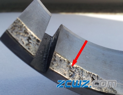 图3 破损处与滚道边缘的棱状材料碾压凸起