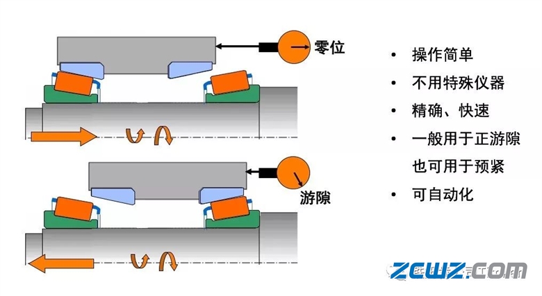 该方法对不同系列的轴承需要单独的量规,相对成本较高。但是当大批量安装时,平均下来每次的成本就很合算。尤其在自动化领域,已经证明是很有效的方法。