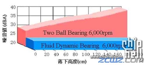测试数据三:同规格双滚珠轴承和FDB轴承风扇在不同高度落下后噪音的表现对比。