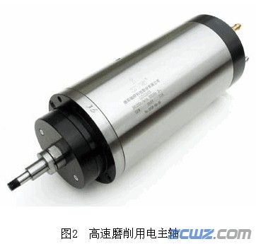 高速电主轴(图2)起源于内表面磨削行业,在以内表面磨加工为主导的轴承和汽车零部件制造业得到了广泛的使用。多年来,国内有关工程技术人员一直在坚持不懈地努力攻克技术难关,先后开发出多代一系列用于内表面磨削的电主轴,转速从3000~240000r/min,功率从0.2kW~20kW。目前,国产电主轴已经大量装备了我国全自动轴承内表面磨床,使零件内表面磨削线速度由35M/S提升到75M/S,大大提高了生产效率,降低了产品成本,使我国成为普通轴承和汽车零部件的生产大国。近年来,随着油气润滑技术、恒温冷却和陶瓷球轴承等新技术的发展,为高速电主轴技术水平的提高创造了有利条件,新一代电主轴朝着具有更大的功率、更高的速度和更高的刚性的方向快速发展。