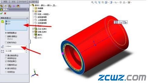 第七步:进行倒角2,如下图所示轴承套设计-SOLIDOWORKS入门到精通(28)