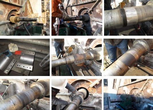 索雷碳纳米聚合物材料技术可实现高温风机轴承位磨损,该技术是利用材料特有的机械性能和针对性的修复工艺在线修复风机等大型轴类的磨损。该技术修复高温风机轴磨损的优势有以下几点:(1)良好的粘结力抗压性能、抗磨损性能及具备金属所具有的弹性变形等综合力学性能实现在线修复,修复效率高,不需要对设备大量拆卸,一般情况下8小时内完成修;(2)该技术类似一种冷焊技术,在线修复过程中不会产生高温,很好的保护设备本体不受损伤,且修复过程中不受轴单边磨损量的限制;(3)修复后在使用过程中不会产生金属疲劳磨损,在设备正常维护保养的前提下,其修复后使用寿命甚至高于新部件的使用寿命。