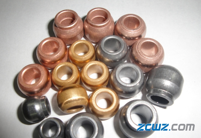 含油轴承以金属粉末为主要原料,用粉末冶金法制作的烧结体,其本来就是多孔质的,而且具有在制造过程中可较自由调节孔隙的数量、大小、形状及分布等技术上的优点。利用烧结体的多孔性,使之含浸10%—40%(体积分数)润滑油,于自行供油状态下使用。运转时,轴承温度升高,由于油的膨胀系数比金属大,因而自动进入滑动表面以润滑轴承。含油轴承加一次油可以使用较长时间,常用于加油不方便的场合。