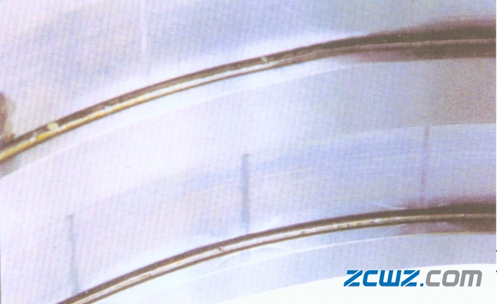 2、轴承划伤——硬性颗粒及硬物棱角在轴承表面滑动而产生的表面线状机械性损伤。