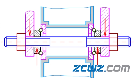 自行车工作时前轮轮毂和滚珠一起相对于前叉和车轴转动,而车轴本身固定不动,且仅承受横向力产生的弯矩,故自行车前轮轴为固定心轴。